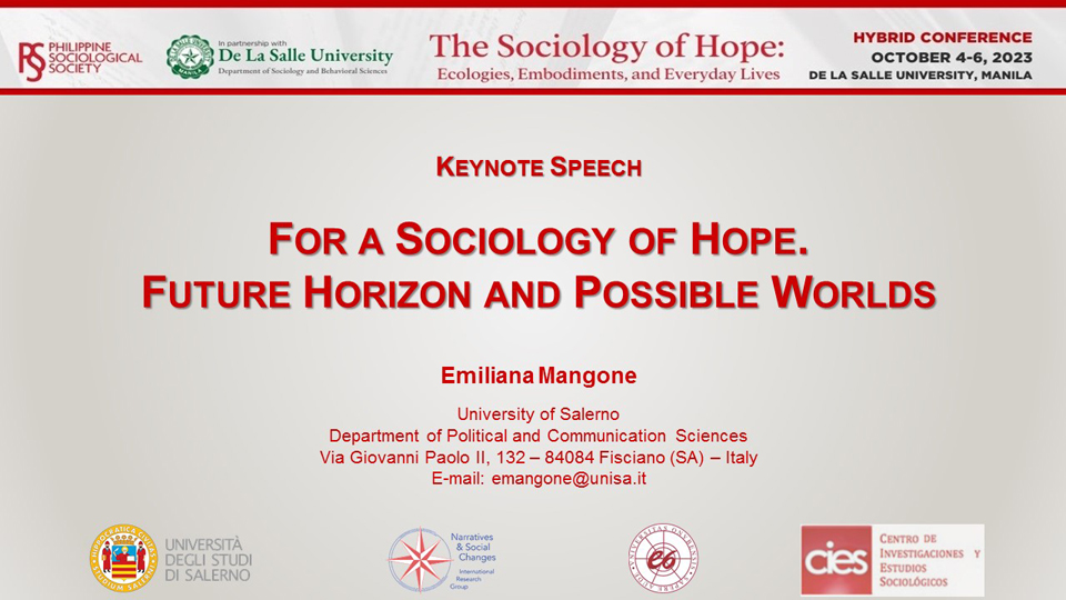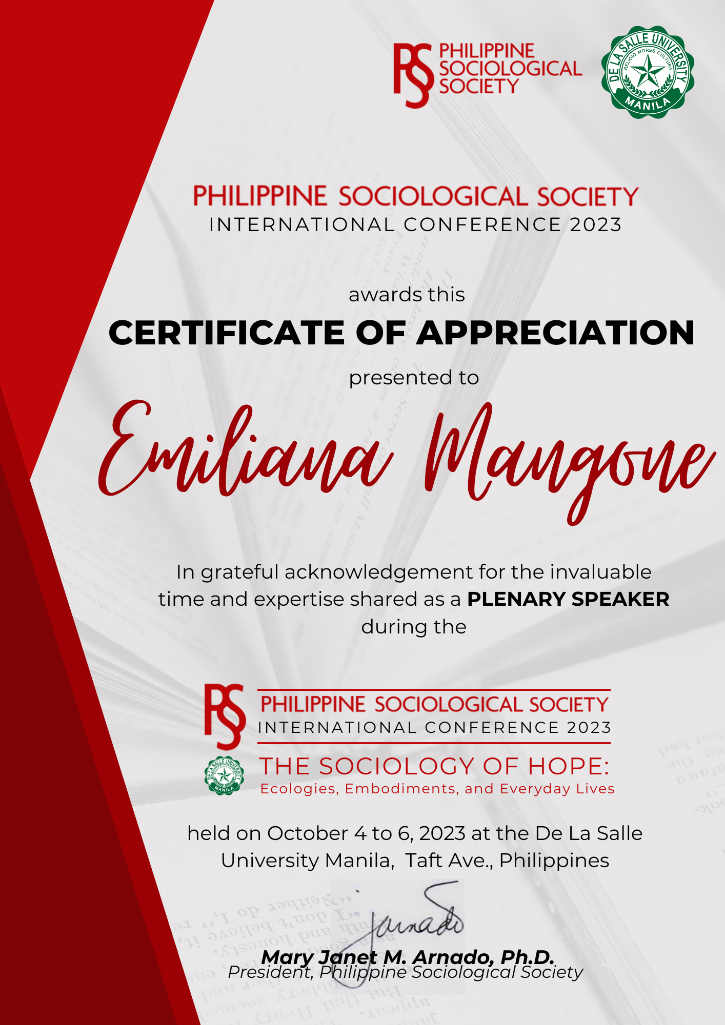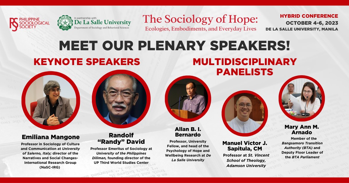 2023 International Conference – Philippine Sociological Society “The Sociology of Hope: Ecologies, Embodiments, and Everyday lives”, De La Salle University (Manila) 4-6 October, 2023